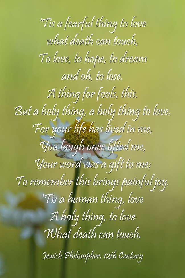 Source: myscinowzbe.pages.dev How terrible it is to love something that death can touch Picture Quotes , This is the work of 20th Century Rabbi Chaim Stern, who was a brilliant liturgist and one of the authors of the Gates of Prayer prayerbook of the Reform Jewish movement. To Love What Death Can Touch 'Tis a fearful thing to love what death can touch